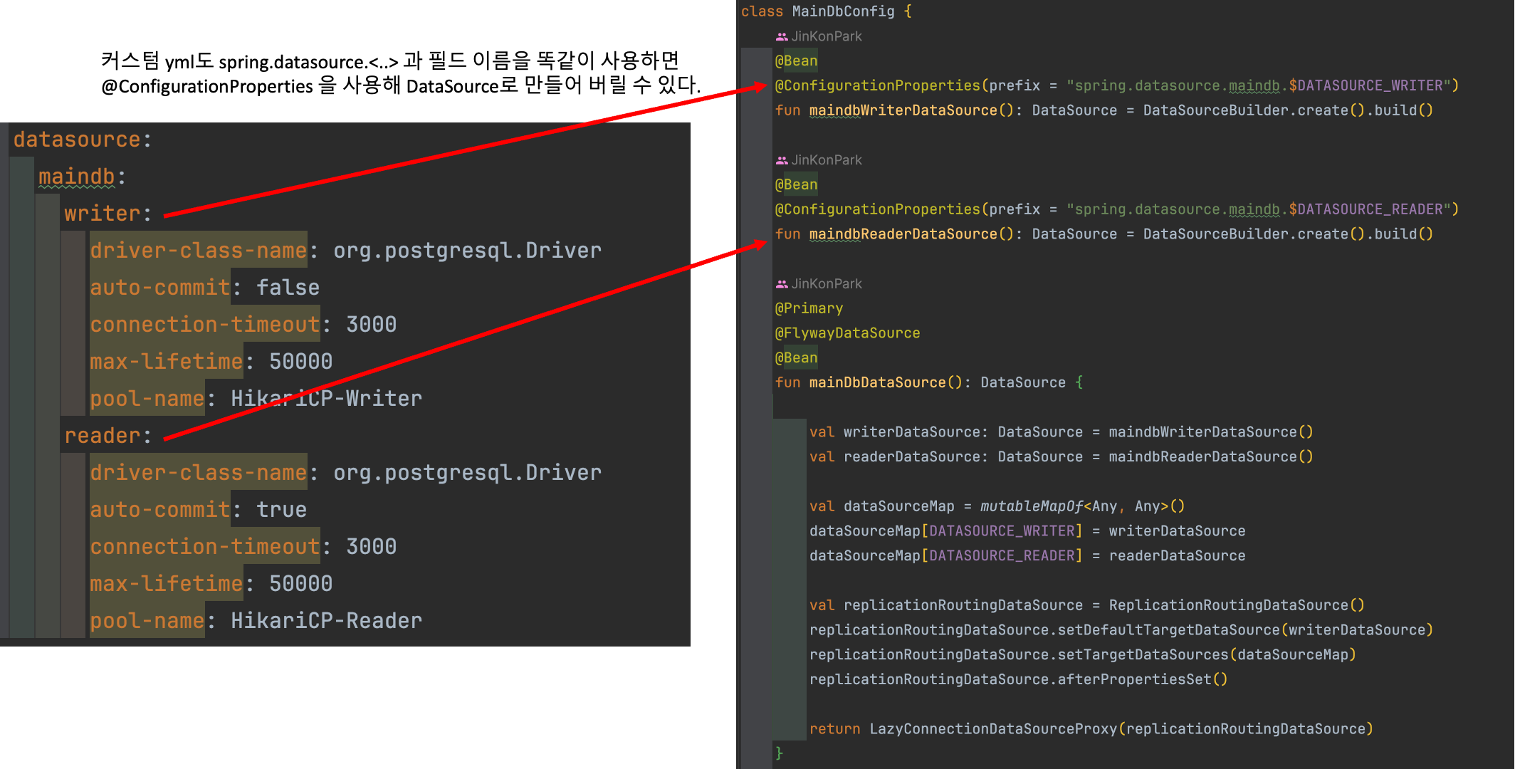 ๋ง์ฝ Reader, Writer DB๋ฅผ ๋ถ๋ฆฌํด์ ์ฌ์ฉํ๋ค๋ฉด ์๋์ ๊ฐ์ด ๊ธฐ๋ณธ๊ฐ์ ๋ค๋ฅด๊ฒ ์ค์ ํด์ฃผ๊ธฐ๋ ํฉ๋๋ค.
