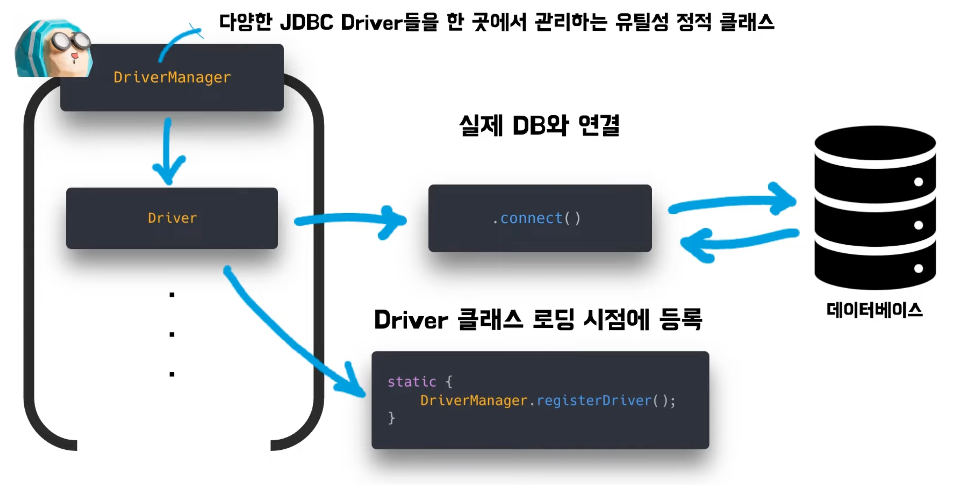 ์๋ฐ์์ Driver ์ธํฐํ์ด์ค๋ก ์ ๊ณต๋ฉ๋๋ค. ์ง์ ์ฌ์ฉํ์ง์๊ณ DataSource๋ฅผ ํตํด ์ฌ์ฉํ๋ฉฐ ์ด๋ ํน์ DB์ ์ค์ง์ ์ธ ํต์ ์ ๊ตฌํํ ๋ถ๋ถ์ ๋๋ค. Driver ๊ตฌํ์ฒด๋ ๊ณต์ ๋ฒค๋์ฌ(ex Oracle, MS)๊ฐ ๊ตฌํํ ์ต์ ํ๋ ์ฝ๋๋ฅผ ์ด์ฉํฉ๋๋ค.