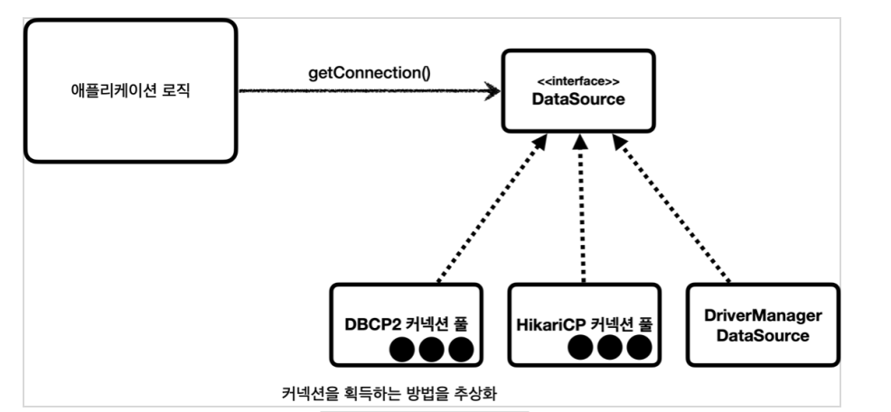 ์๋ฐ์์ DataSource ์ธํฐํ์ด์ค๋ก ์ ๊ณต๋ฉ๋๋ค. ์ด๋ JDBC Driver๊ฐ ๊ฐ์ ธ์จ DB ์ปค๋ฅ์ ๊ณผ ์ปค๋ฅ์ ํ์ ๊ด๋ฆฌํ๋ ๊ธฐ๋ฅ์ ์ ๊ณตํฉ๋๋ค. DataSource์ ๊ตฌํ์ฒด ๋ํ DB ๋ฒค๋์ฌ ๋๋ ์๋ํํฐ์ฌ๋ฅผ ํตํด ์ ๊ณต๋ฉ๋๋ค.