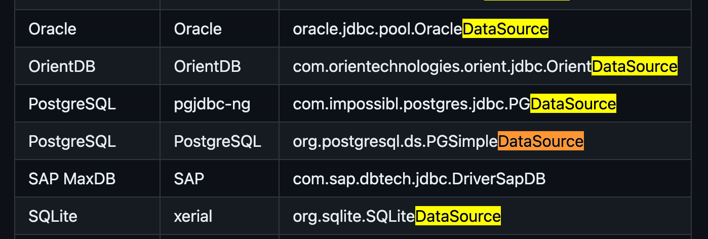 // PostgreSQL์ DataSource ๊ตฌํ์ฒด ํด๋์ค ์ด๋ฆ์ ์ค์