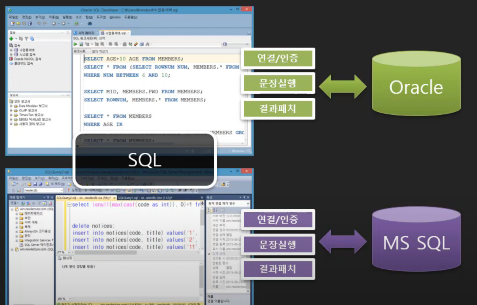 Java ์ฝ๋์์ ๋ฐ์ดํฐ๋ฒ ์ด์ค๋ฅผ ์ฌ์ฉํ๊ธฐ ์ํด ์ ๊ณตํด์ฃผ๋ API. ์ฐธ๊ณ ๋ก JDBC๊ฐ ๋์ค๊ธฐ ์ด์ ์๋ MS์งํ ( C์ธ์ด)์์ ๋ง๋ ODBC API (Open DB Connectivity)๋ฅผ ์ ๊ณตํ์๋ค.