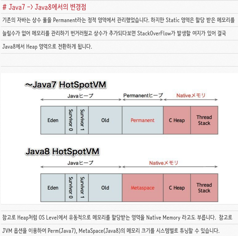 Java8๋ถํฐ๋ ์์ ํ๋ Heap๋ฉ๋ชจ๋ฆฌ์ ์์นํ๊ฒ ๋๋ค. ์ฆ GC์ ๋์์ด๋ค. ๋ํ ๋ฉ๋ชจ๋ฆฌ์ ์ธ ์ธก๋ฉด๋ฟ ์๋๋ผ ๋ฌธ์์ด ์กฐ์ ์ฑ๋ฅ์ด ๊ตฌ๋ฆฌ๋ค๋ ๋จ์ ๋ ์๋ค๋๊ฑธ ์์ง๋ง์.