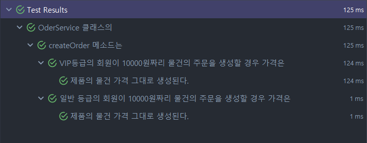 Order order = orderService.createOrder(vipMember.getId(), "item", 10000);