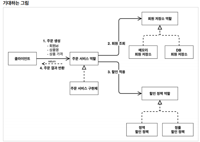 3. ์๋ก์ด ํ ์ธ ์ ์ฑ ์ ๋ฌธ์ ์ => ๊ตฌํ์ฒด๋ฅผ ๋ณ๊ฒฝํ๋ฉด, ํด๋ผ์ด์ธํธ ์ฝ๋๋ ๋ณ๊ฒฝํด์ผํจ. DIP ์๋ฐ