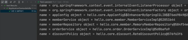 ๋ํ getBeanDefinition์ ๋น๊ตํด์ ๋ด๊ฐ ๋ฑ๋กํ ์ดํ๋ฆฌ์ผ์ด์ ๋น(appConfig, memberService...)๋ง ํ์ธํ ์๋ ์๋ค.