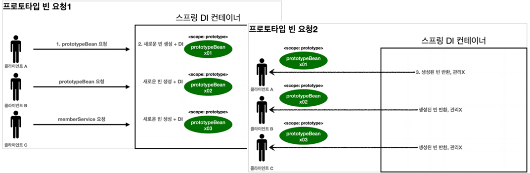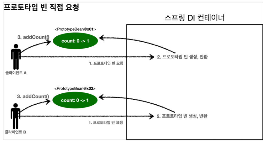 ์คํ๋ง ์ปจํ ์ด๋์ ํ๋กํ ํ์ ์ค์ฝํ ๋น์ ์์ฒญํ๋ฉด ํญ์ ์๋ก์ด ๊ฐ์ฒด ์ธ์คํด์ค๋ฅผ ์์ฑํ์ฌ ๋ฐํํ๋ค.