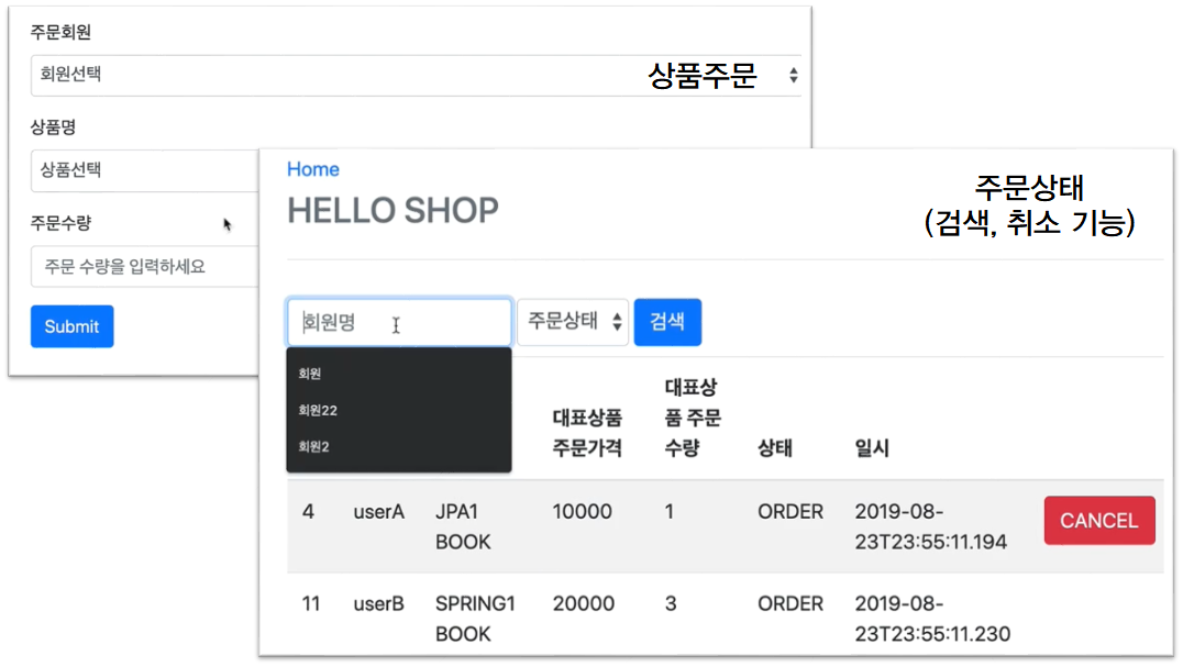 | 4. ์ฃผ๋ฌธ๊ธฐ๋ฅ | ์ํ ์ฃผ๋ฌธ ์ฃผ๋ฌธ ๋ด์ญ ์กฐํ ์ฃผ๋ฌธ ์ทจ์ |