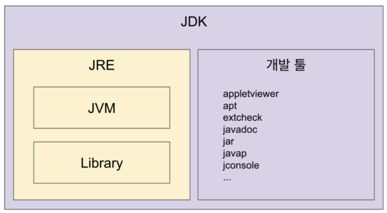 - ๊ฐ๋ฐ๊ณผ ๊ด๋ จ๋ ๋๊ตฌ๋ ํฌํจํ์ง ์๋๋ค. (* ์ค๋ผํด11๋ถํฐ JRE๋ ๋ฐ๋ก ์ ๊ณตํด์ฃผ๊ณ ์์ง์๋ค. JDK๋ก ์ ๊ณต) - JDK (Java Development Kit)