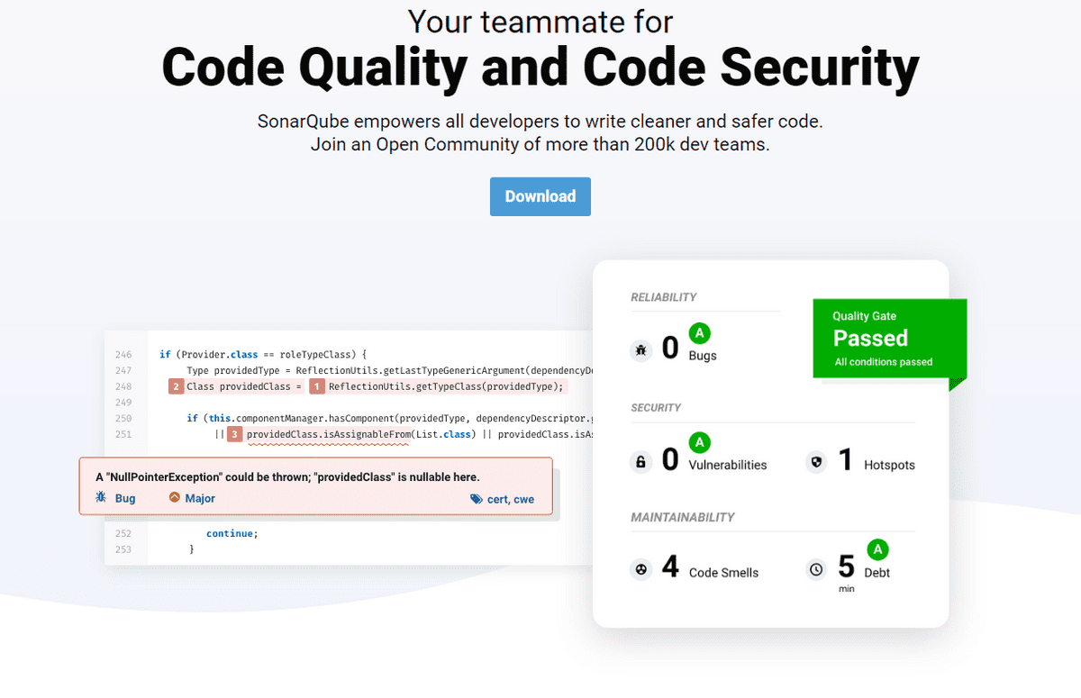 ๊ทธ ์ค์์๋ SonarQube(์ด์ ์ Sonar๋ผ๊ณ ๋ถ๋ ธ๋) ๋๊ตฌ์ ๊ฒฝ์ฐ ์์ ์๋ ค์ง ๋ค๋ฅธ ํด๋ค์ ์ข ํฉํ์ด๋ผ๊ณ ์๊ฐํ ์ ๋๋ก ๊ธฐ๋ฅ์ด ๋ง์ต๋๋ค. ๋ฌด์๋ณด๋ค ๋ ํผ๋ฐ์ค๊ฐ ๋ค์ํ๊ณ github์ Jenkins๋ฑ ์ฐ๋์ฑ์ด ์ข์ ๋ง์ด ์ฌ์ฉ๋ฉ๋๋ค.