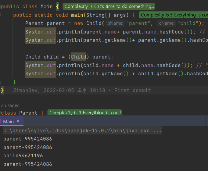 System.out.println(parent.name); // "parent"κ° λ°νλ¨