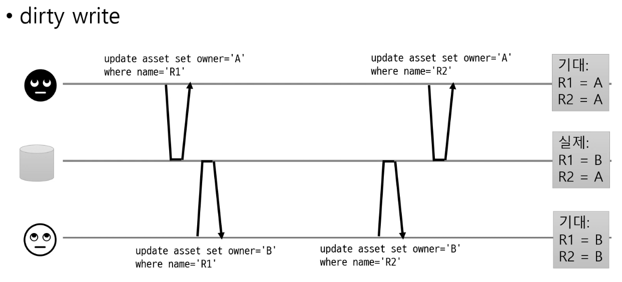 @ ๋ฌธ์ 2: ์ปค๋ฐ๋์ง ์์ ๋ฐ์ดํฐ ๋ฎ์ด์ฐ๊ธฐ (dirty write)