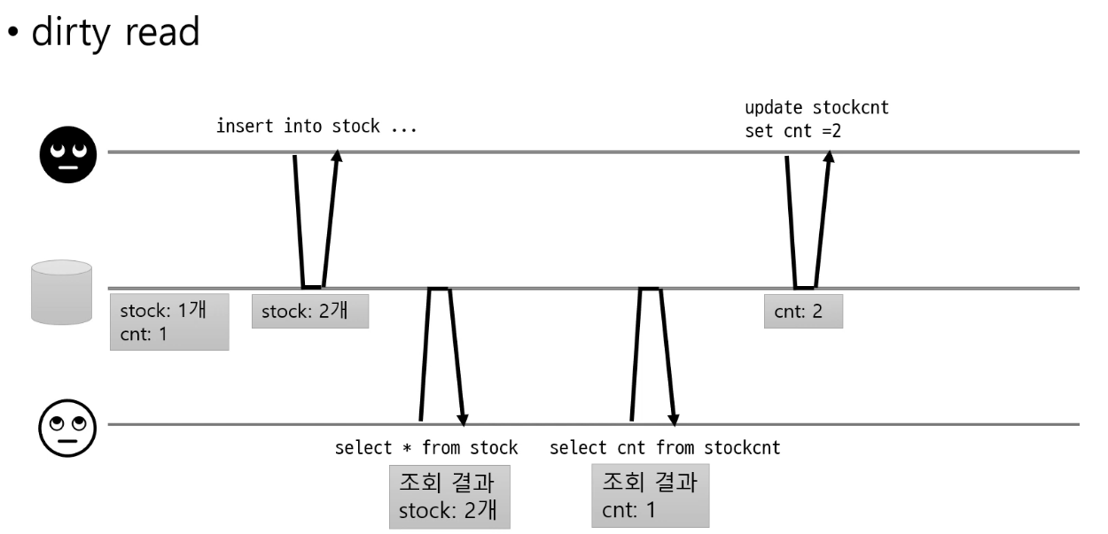 @ ๋ฌธ์ 1: ์ปค๋ฐ๋์ง ์์ ๋ฐ์ดํฐ ์ฝ๊ธฐ (dirty read)