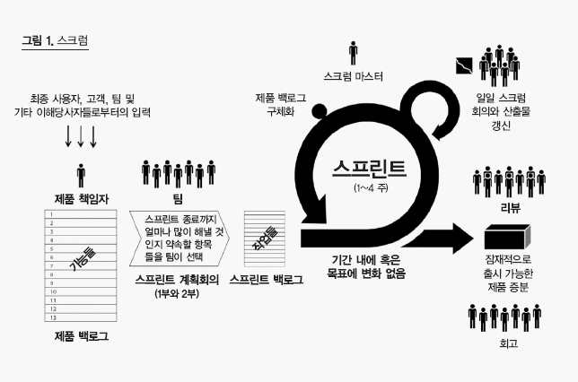 ์ํํธ์จ์ด ๊ฐ๋ฐ์์๋ ์ ํต์ ์ธ ํญํฌ์ ๋ชจ๋ธ์ ๋ฐ๋ผ๊ฐ๊ธฐ ํ๋ค๋ค. ๊ณ ๊ฐ์ ์๊ตฌ์ฌํญ์ ๋์์์ด ๋ณํํ๋ค. ๊ธฐ๋ฅ(๊ตฌํ)์ ์ด์ ์ ๋ง์ถ๋๊ฒ ์๋๋ผ ์๋น์ค(์ถ์ํ)์ ๊ธฐ์ค์ ๋ง์ถฐ ์๋น์ค ๋จ์์ ์งง์ ์ฃผ๊ธฐ๋ก [๊ธฐํ-๊ฐ๋ฐ-ํ ์คํธ-๋ฐฐํฌ]ํ๋ ์ ์์ผ ์ ๊ทผ๋ฒ์ด ํ์ํ๋ค.