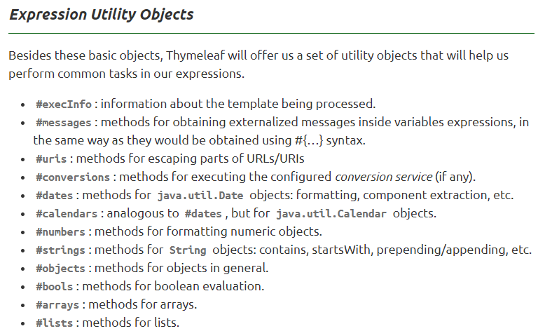 - ๊ณต์ ๋ฉ๋ด์ผ - ๊ธฐ๋ณธ ๊ธฐ๋ฅ: https://www.thymeleaf.org/doc/tutorials/3.0/usingthymeleaf.html