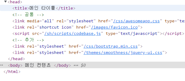 <html> ํ๊ทธ์ ํ ํ๋ฆฟ์ ์ ์ฉํ๋ฉด, ํ์ด์ง์ ๊ณตํต์ ์ธ ๋ ์ด์์์ ์ ์ฉํ๊ณ ํ์ํ ๋ ๊ตฌ์กฐ๋ฅผ ๋ณ๊ฒฝํ ์ ์๋ค.