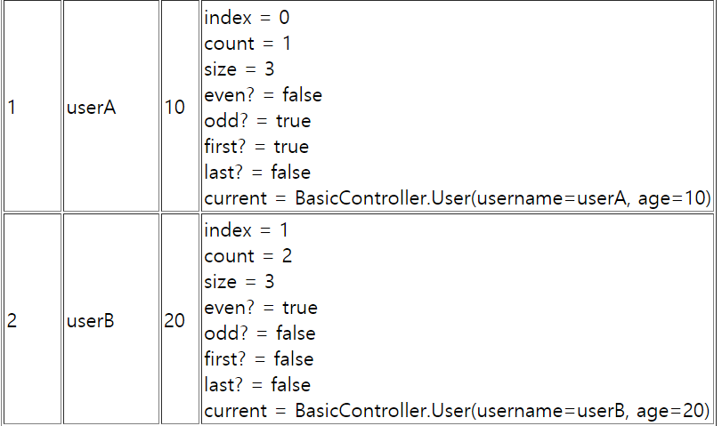์ด๋ ๊ฒ model์ ๋ด์ ๊ฐ์ฒด, ๊ฐ์ ์๋์ ๊ฐ์ด HTML ํ๊ทธ์ ์์ฑ์ผ๋ก ์ฌ์ฉํ ์ ์๋ค. ์ฐธ๊ณ ๋ก thํ๊ทธ๋ฅผ ์ฌ์ฉํ์ ๋ ์์ ๋ด์ฉ์ ์๋ฒ์์ ๋ ๋๋ง ๋ ๋ ์์ด์ง๋ค.