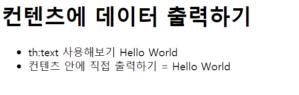 <li>th:text ์ฌ์ฉ <span th:text="${data}"> ๋์ฒด ํ