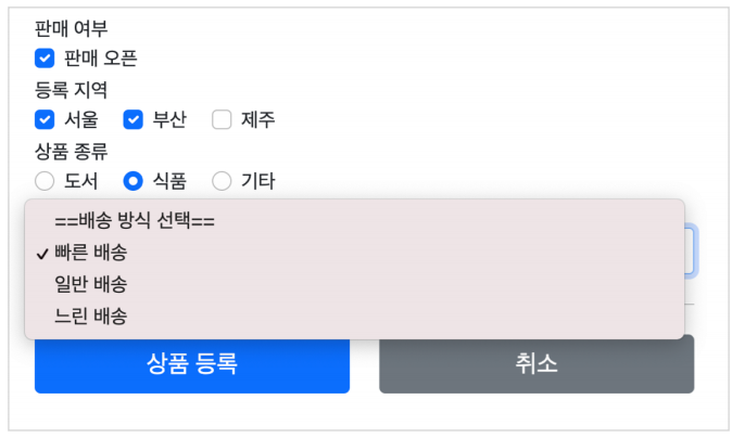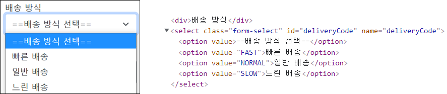 <option value="">==๋ฐฐ์ก ๋ฐฉ์ ์ ํ==</option>