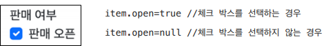 - ์ฒดํฌ๋ฐ์ค์ ๊ฒฝ์ฐ null์ด ๋ฐํ๋์ด๋ ์๊ด์์ด์ ๋ฐ๋ก ํ๋ ํ๋๋ฅผ ๋ง๋ค์ง๋ ์๋๋ค.