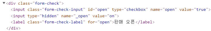 <label for="open" class="form-check-label">ํ๋งค ์คํ</label>