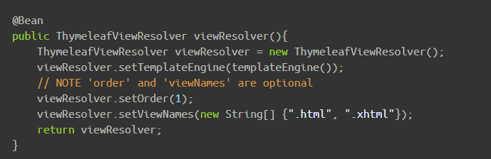 ์๋๋ @Bean์ผ๋ก ํ์๋ฆฌํ ์์ง๊ณผ ํ์๋ฆฌํ ๋ทฐ๋ฆฌ์กธ๋ฒ๋ฅผ ์คํ๋ง ๋น์ผ๋ก ๋ฑ๋กํด์ผ ํ์ผ๋, ์คํ๋ง ๋ถํธ์์๋ ํ์ค๋ง ์ถ๊ฐํ๋ฉด ๋๋ค.