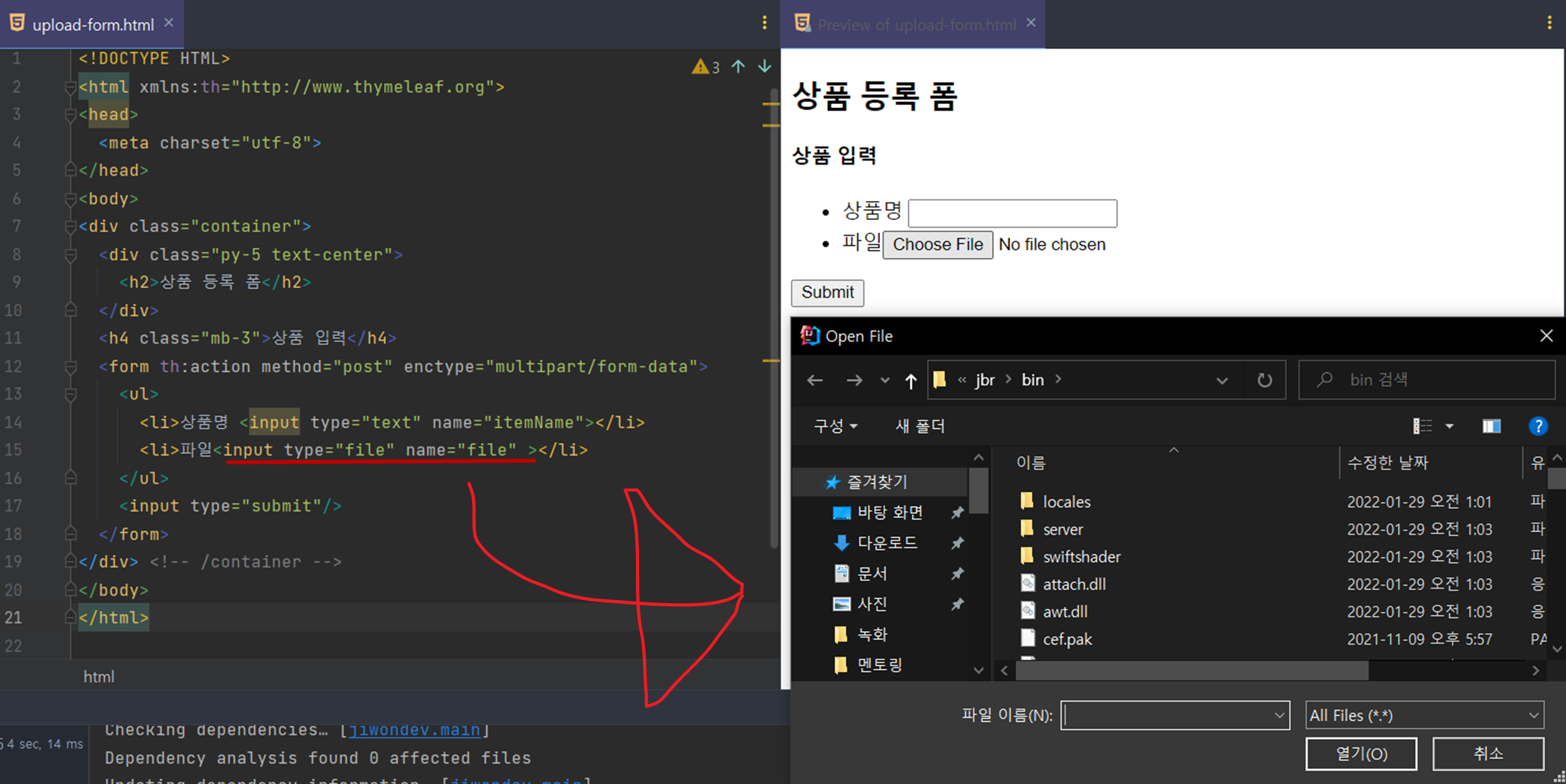 โก ์ฐธ๊ณ ๋ก ์ด ๋ฐฉ์์ ์ฌ์ฉํ๋ ค๋ฉด enctype = "multipart/form-data"๋ ๊ฐ์ด ์ง์ ํด์ค์ผ ํ๋ค.