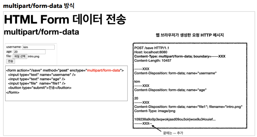 - multipart/form-data : ํน์ํ ๋ฌธ๋ฒ์ผ๋ก ์ฌ๋ฌ ๋ฐ์ดํฐ๋ฅผ ํจ๊ป ์ ์กํ๋ค.