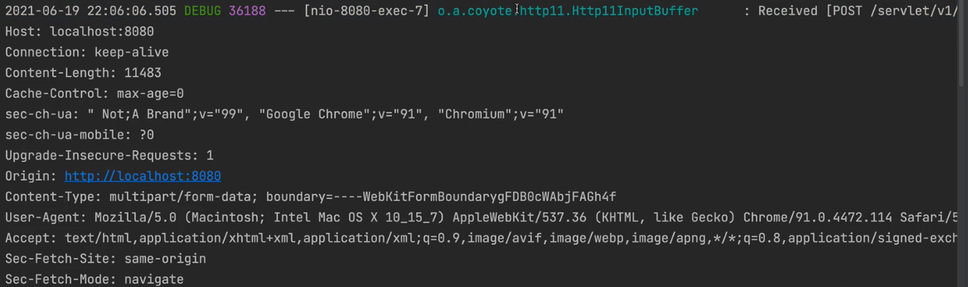 ์๋ธ๋ฆฟ์์๋ HttpRequest ๊ฐ์ฒด๋ฅผ ์ฌ์ฉํ๋ฉด, ์ด๋ฅผ ์์ํ RequestFacade๋ฅผ ํตํด ๋ฉํฐํํธ ๋ฐ์ดํฐ๋ฅผ ์ฒ๋ฆฌํด์ค๋ค.
