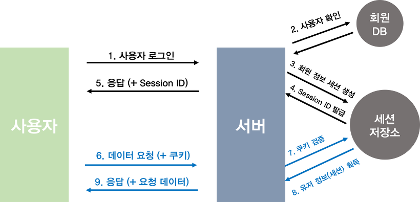 ๊ทธ๋์ ์น ์๋ฒ์ 'Session ์ ์ฅ์'๋ฅผ ๋ฐ๋ก ๋ง๋ค์ด ์ฌ์ฉํ๋๊ฒ ์ผ๋ฐ์ ์ด๋ค.