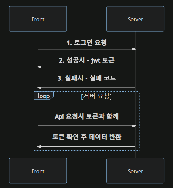 - ๋ก๊ทธ์ธ ์ [๋ก๊ทธ์ธํ๋ ์๋ฒ or ๋ค๋ฅธ ์ธ์ฆ์๋ฒ]๋ก ๋ถํฐ Token(์ํธํ๋ ๋ฌธ์์ด)์ ์๋ต ๋ฐ๋๋ค.