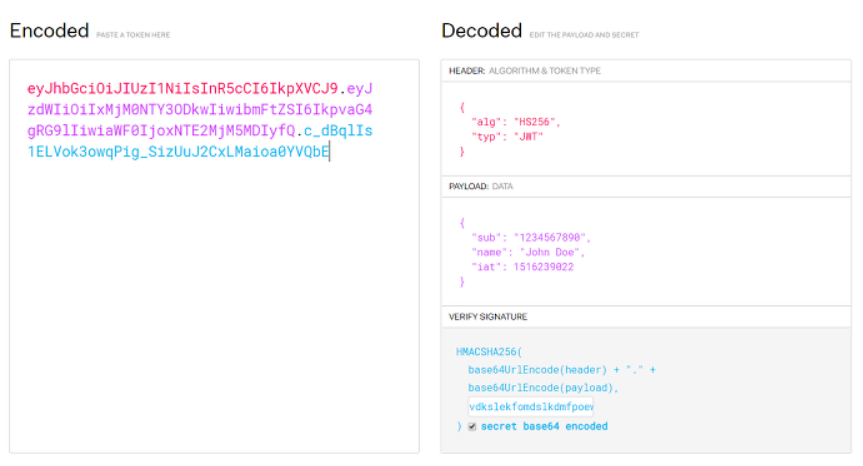 Encoded Header + "." + Encoded Payload + "." + Verify Signature