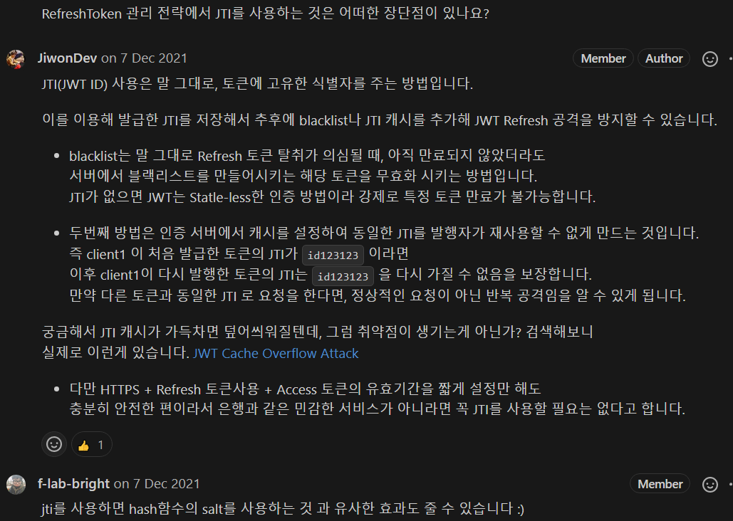 โก Refresh Token์ AccessToken์ ๋ฐ๊ธฐ์ํ ํ ํฐ์ด๋ค. ์ด๋ ๊ฒ ๊ตฌ์ฑํ๋ฉด ์๋ฒ์์ ํ์ทจ๋ฅผ ๊ฐ์งํ์ ๋ Refresh Token ์์ฒญ์ ๊ฑฐ๋ถํ์ฌ ํน์ ์ธ์ ์ ๋ฉ์ถ๊ฒ ํ ์ ์๋ค. - ๋ณดํต ์ ํจ๊ธฐ๊ฐ์ 1์๊ฐ/30์ผ ์ด๋ ๊ฒ ์ฌ์ฉํ๋ฉฐ ๊ทธ๋ฅ AccessToken๋ง ์ฌ์ฉํ๋ ์ฌ์ดํธ๋ ์๊ธดํ๋ค. (github๋ฑ)