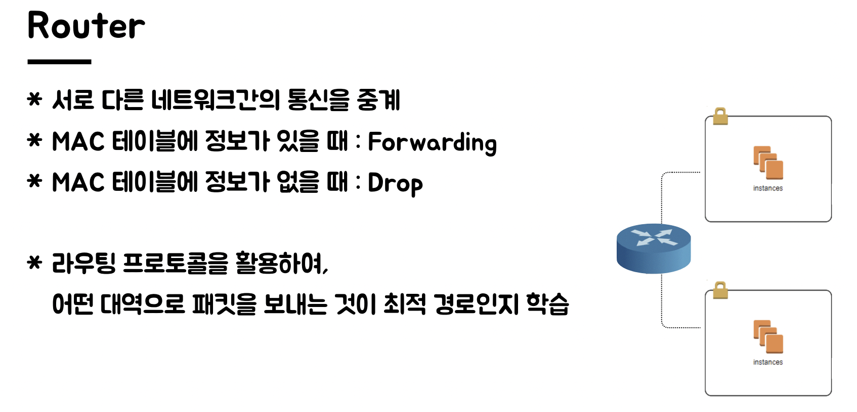 ์ฆ Public IP๊ฐ ์๋ ๋ด๋ถ๋ง์์๋ง ์ฌ์ฉํ๋ Private IP๋ ํด๋น ํ ์ด๋ธ ์ ๋ณด๊ฐ ์์ผ๋ฉด ๋คํธ์ํฌ ํต์ ์ด ๋ถ๊ฐ๋ฅํฉ๋๋ค. - ๋ผ์ฐํฐ๋ ๋ผ์ฐํ ํ๋กํ ์ฝ์ ํ์ฉํ์ฌ, ์ด๋ ํ ๋์ญ์ผ๋ก ํจํท์ ๋ณด๋ด๋๊ฒ ์ค๋ฅ์์ด ๊ฐ ์ ์๋ ๊ฒฝ๋ก์ธ์ง ํ์ตํฉ๋๋ค.