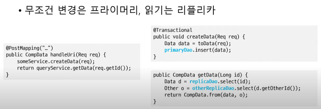 - Replica๋ ๋ฐ๋์ ์ฝ๊ธฐ ์ ์ฉ์ผ๋ก ๊ตฌ์ฑํด์ผํ๋ค. ์ฑ๋ฅ ๋ฌธ์ ๊ฐ ์๋๋ผ, Primary์์ ๋ฐ์ดํฐ ๋ฌด๊ฒฐ์ฑ, ์ ํฉ์ฑ์ด ๊นจ์ง๋ค.