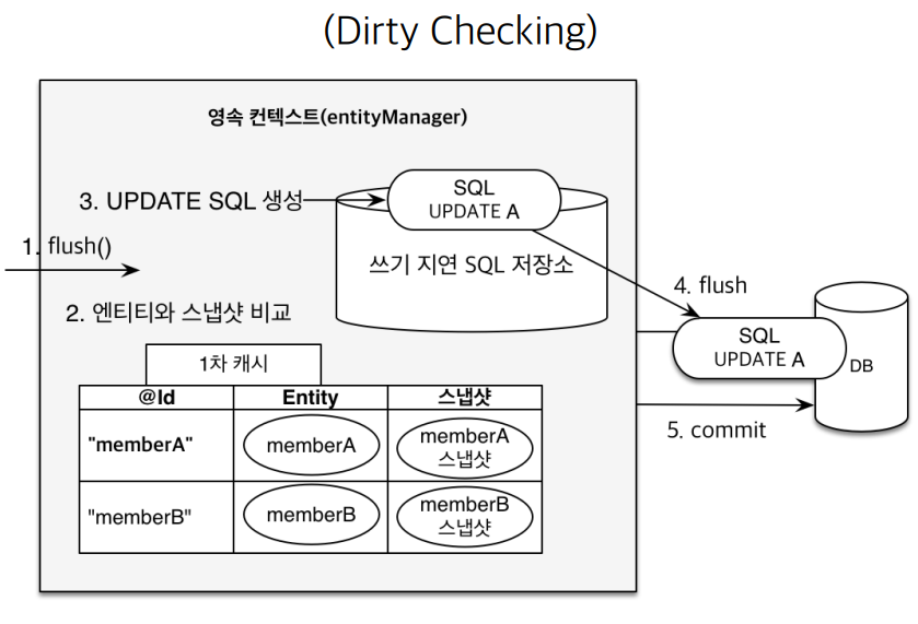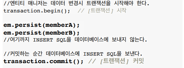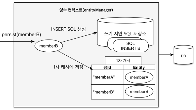 ์ด๋ EntityManager (์์์ฑ ์ปจํ ์คํธ)์์ ์บ์์ ํจ๊ป ์ฐ๊ธฐ์ง์ฐ SQL ์ ์ฅ์๋ฅผ ๊ฐ์ง๊ณ ์๊ธฐ ๋๋ฌธ์ด๋ค.