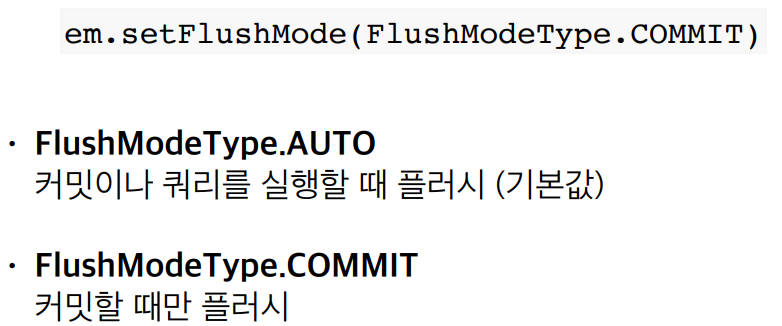 ๋ฌผ๋ก EntityManager.flush()๋ก ์ง์ ํธ์ถํ๋ ๋ฐฉ๋ฒ๋ ์์ง๋ง, ์ฐ๋ฆฌ๊ฐ ์ฌ์ฉํ ์ผ์ ๊ฑฐ์ ์๋ค.