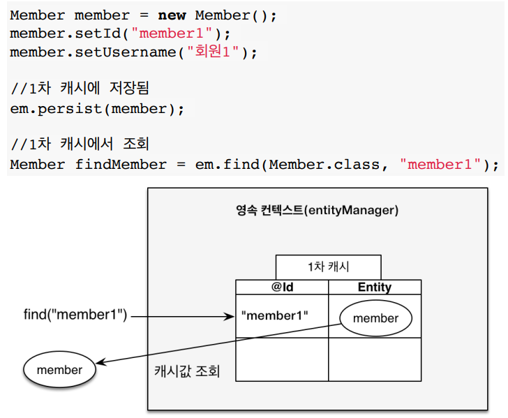 Member findMember = entityManager.find(Member.class, 1L);