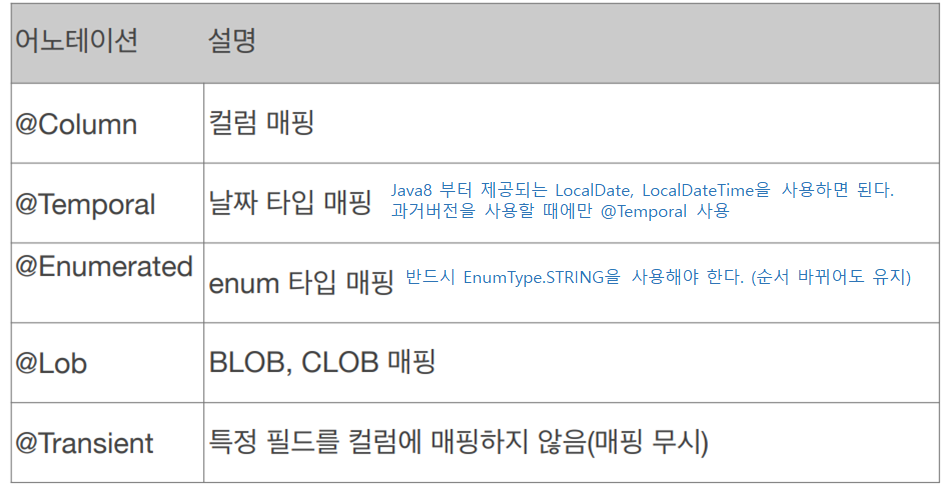 @Column ๋ง๊ณ ๋ค์ํ ๋งคํ ์ด๋ ธํ ์ด์ ์ ์ ๊ณตํด์ค๋ค.