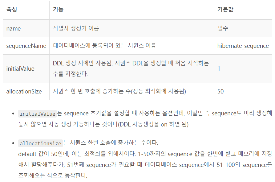 generator = "MY_BOARD_SEQ_GENERATOR" // ์์ sequence ์ด๋ฆ