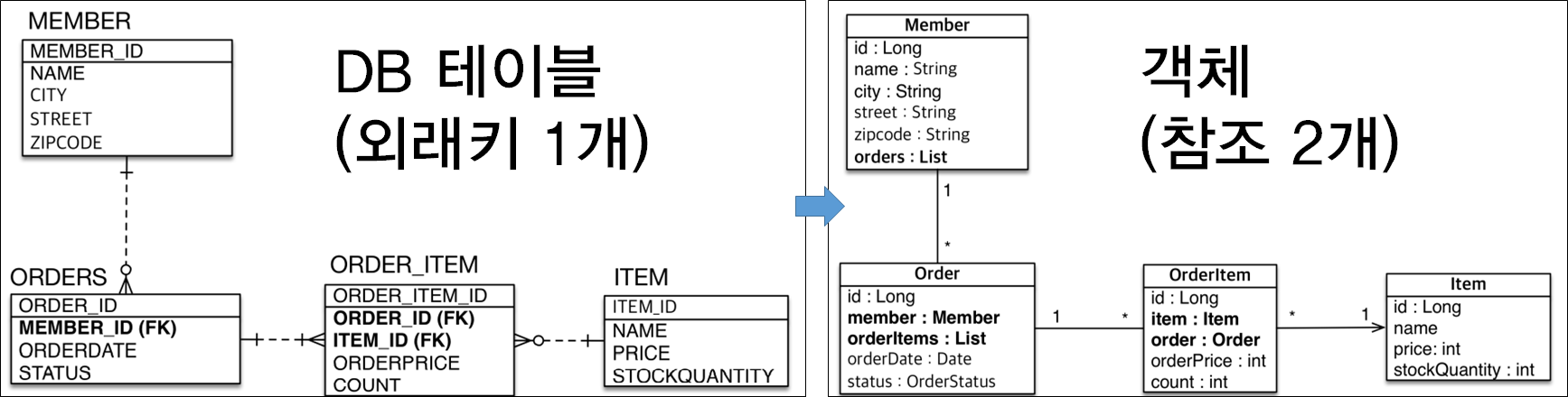- DB๋ ์ธ๋ํค๊ฐ 1๊ฐ์ง๋ง, ๊ฐ์ฒด์๋ ์์ชฝ ๋ ๊ฐ์ง ์ฐธ์กฐ๊ฐ์ด ์๋ค.