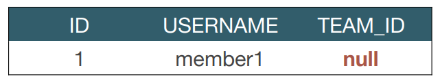 // ํด๋น JPA์ฝ๋๋ Member์ Team์ด ์ฐ๊ฒฐ๋์ง ์๋๋ค. DB ์ธ๋ํค์๋ null์ด ๋ค์ด๊ฐ์๋ค.