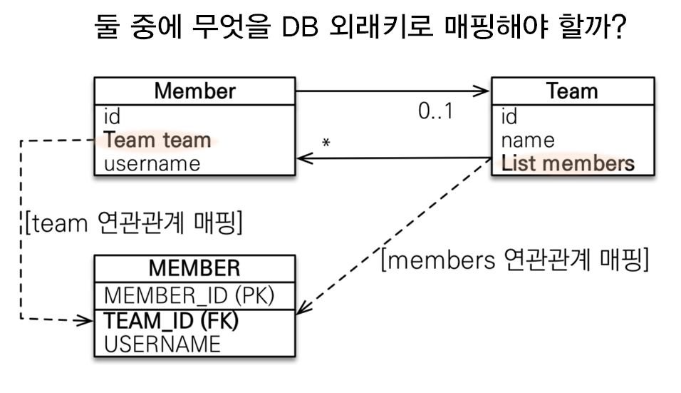 ๊ทน๋จ์ ์ผ๋ก Member.team์๋ ๊ฐ์ ๋ฃ๊ณ , Team.members์๋ ๊ฐ์ ๋ฃ์ง ์๋๋ค๋ฉด?