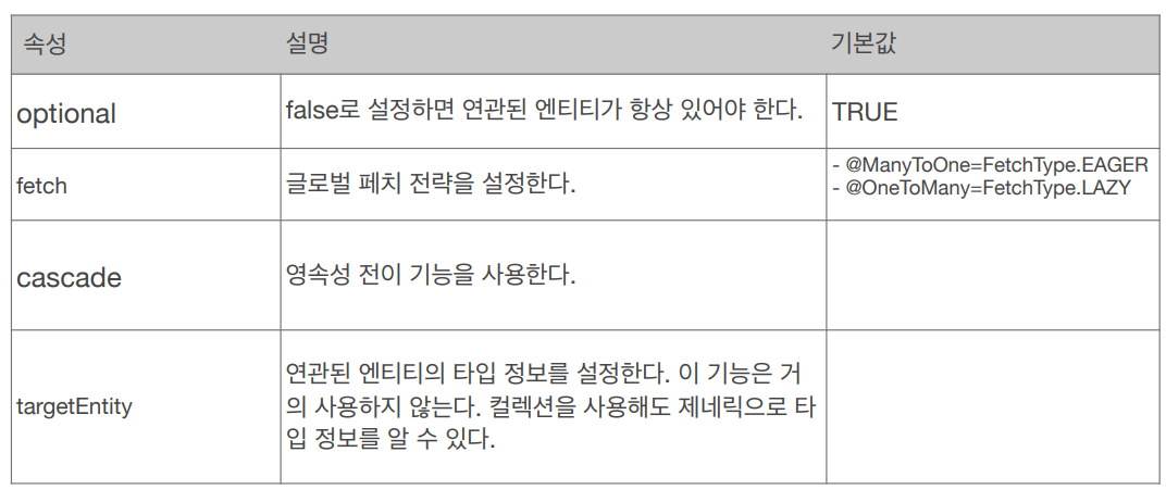 @JoinTable(name="JOIN_TABLE") ์ด๋ ๊ฒ ์ฌ์ฉํจ. ๊ทธ ์ธ๋ ๋ค๋๋ค ๊ด๊ณ๋ฅผ ์ฌ์ฉํ ์ผ์ด ์์ผ๋ฏ๋ก ์๋ต.