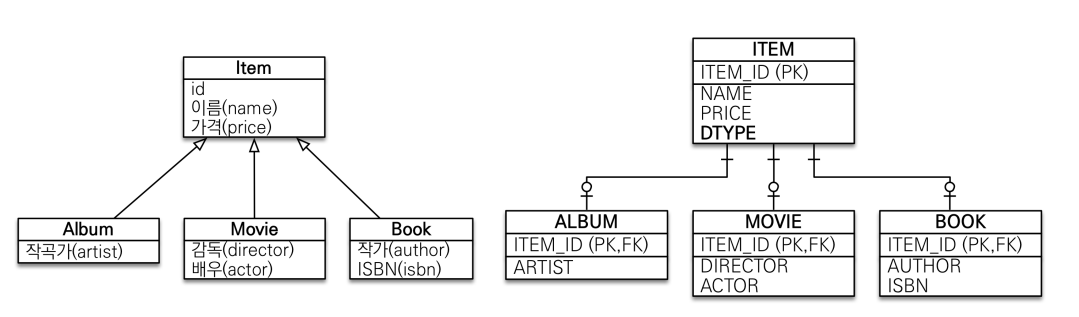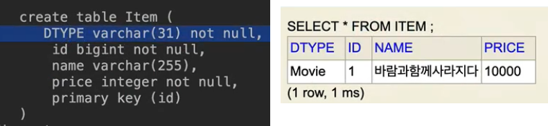 ๋จ์ผ ํ ์ด๋ธ ์ ๋ต์์๋ ํ์ ๊ตฌ๋ถ์ด ์ด๋ ค์์ ๋ฐ๋์ DTYPE์ ๋ฃ์ด์ค์ผํ๋ค. ๋ฌผ๋ก ์นผ๋ผ์ด๋ฆ์ ๋ค๋ฅธ๊ฑธ ์จ๋ ์๊ด์์