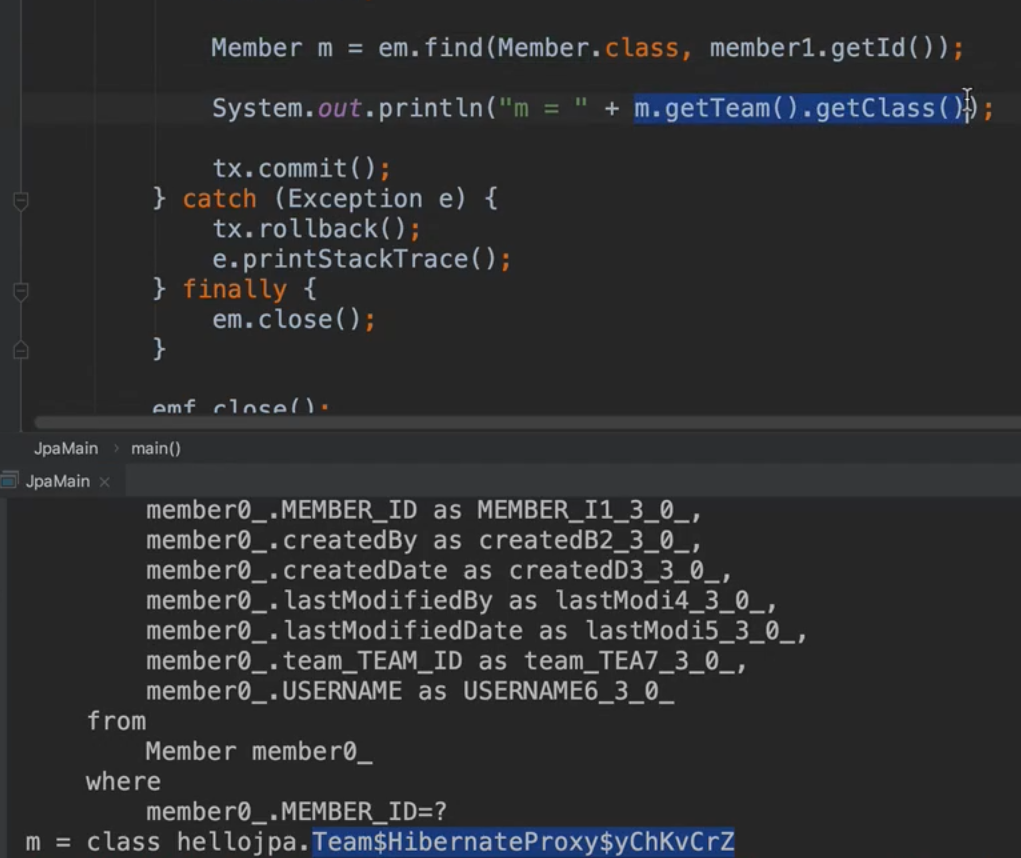 System.out.println(m.getTeam().getName()); // LAZY ๋ก๋ฉ ๋ฐ์ ์ํจ
