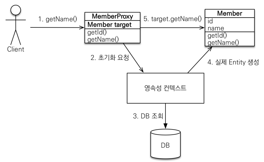 ์ต์ด์ getReference๋ฅผ ํธ์ถํ๋ ์์ ์๋, ์ค์ ๊ฐ์ฒด์ ์ฐธ์กฐ๋ฅผ ๊ฐ์ง๊ณ ์์ง์๊ณ ๊ทธ๋ฅ ํ๋ก์๋ง ๋ง๋ ๋ค.