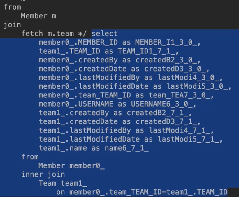 em.createQuery(jpql "select m from Member m join fetch m.team", Member.class).getResultList();