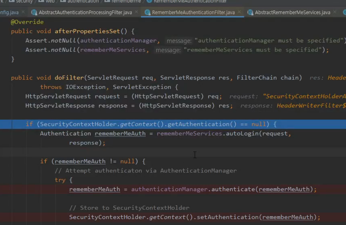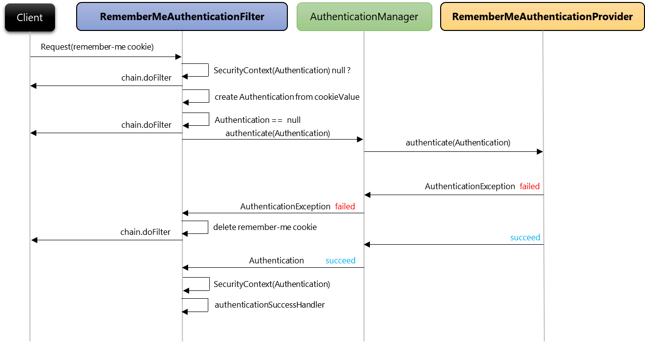 ์ฌ์ฉ์๊ฐ Remember-me ์ฟ ํค๋ฅผ ์์ฒญ์ ๋ณด๋ด๋ฉด, ์ ํจ์ฑ์ ๊ฒ์ฌํ๊ณ ๋ณ๋์ ์ธ์ฆ๊ณผ์ ์์ด ๋ก๊ทธ์ธ์ ์ ์งํด์ค๋ค.