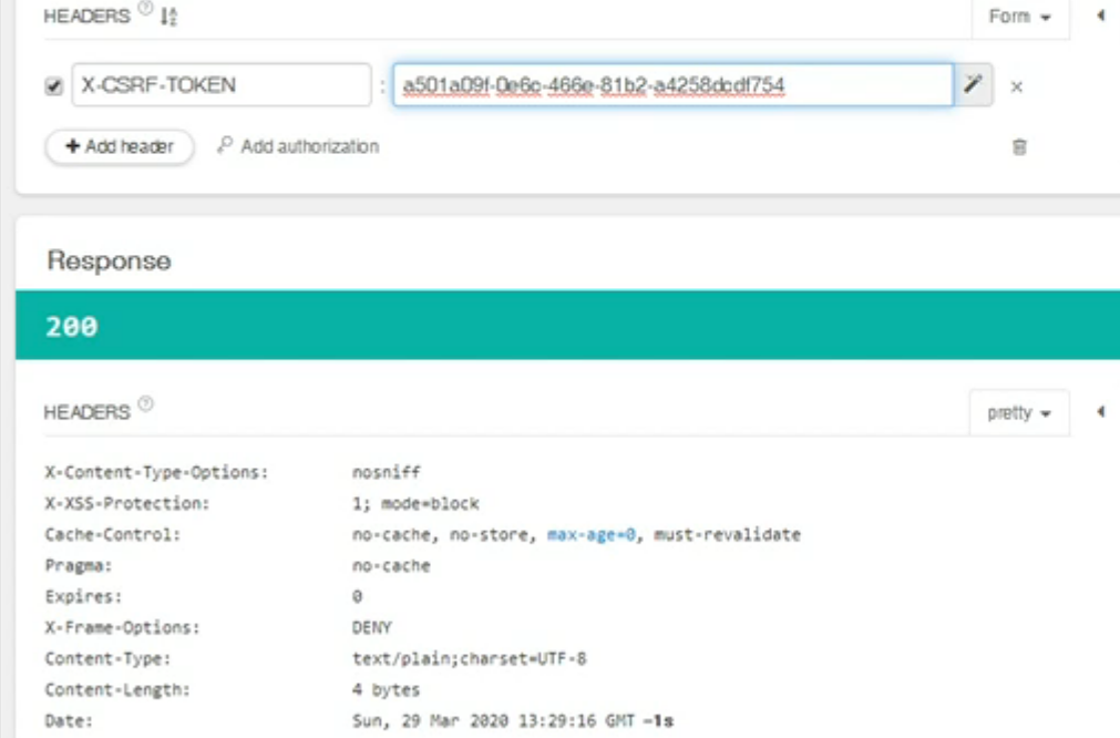 (* X-XSRF-TOKEN ๊ฐ์ด ์๋ค๋ฉด 403 Forbidden์ ๋ฐํํ๋๋ก ๊ธฐ๋ณธ์ผ๋ก ์ค์ ๋์ด์๋ค.)