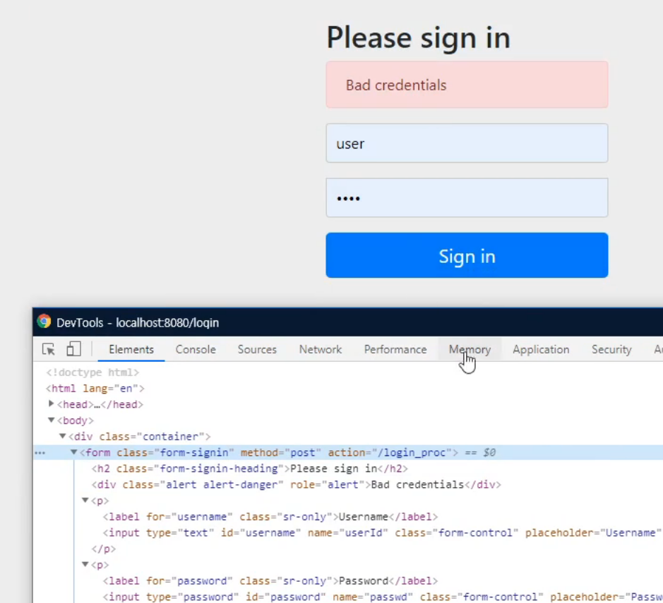 ์ฐธ๊ณ ๋ก Login HTML ํผ์ ์ค์ ๊ฐ๊ณผ ๋ค๋ฅด๊ฒ ์์ฑํ๋ค๋ฉด Bad crednetials ๋ฑ์ ์์ธ๋ฅผ ๋ฐ์์ํจ๋ค.